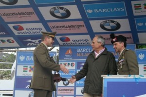 La coppa del Trofeo Ficuciello è stata consegnata al comandante del 1° reggimento Trasmissioni, colonnello Giancarlo Micheletti, dal direttore della Gazzetta dello Sport, Andrea Monti (foto PAO NRDC-ITA).