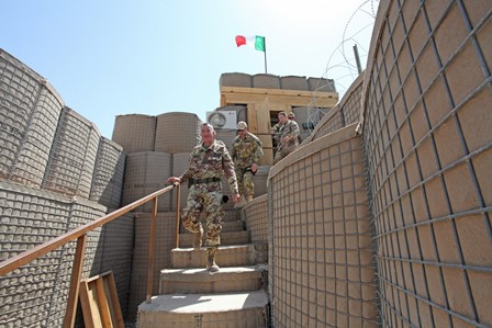 20130810_RC-W ISAF_ il generale Perretti scende da una postazione di sicurezza della FOB Tobruk di Bala Boluk