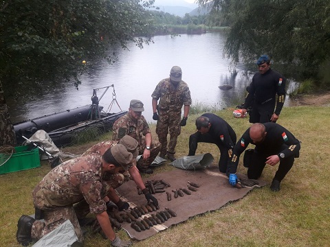 I Palombari della Marina Militare, spiega la Difesa in un comunicato stampa del 6 luglio, hanno rimosso dal Lago di Varna (Bolzano) una ingente quantità di residuati bellici del primo conflitto mondiale, che sono stati consegnati agli Artificieri della brigata Alpina Julia per la successiva neutralizzazione.